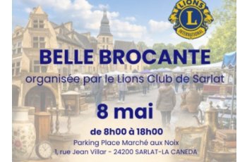 Le 8 mai prochain, Sarlat sera rythmée par la brocante solidaire organisée par le Lions Club de la ville ! Pour la troisième année venez chiner, découvrir et faire de bonnes affaires. Sur place buvette et bonne ambiance garantie !
