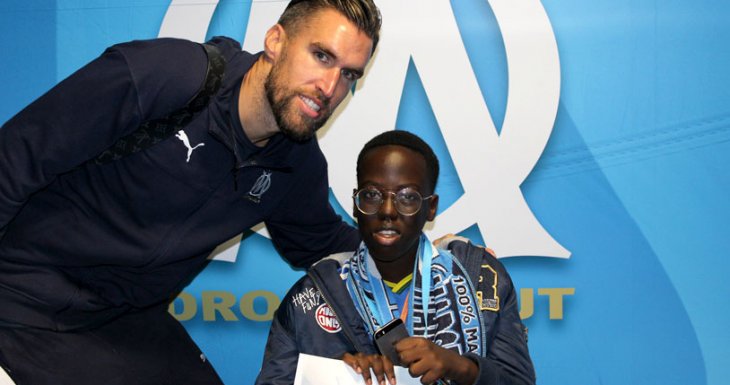 Pour le plus grand bonheur du jeune homme, l’OM gagne le match ! La petite troupe part ensuite visiter les coulisses du stade, et Sidy-Lamine rencontre tous les joueurs de l’équipe ! Bienveillants et souriants, ils prennent des photos avec notre prince et en profitent même pour lui signer la casquette offerte par le stade, quel bonheur ! Bouna Sarr lui remet même le maillot qu’il portait durant le match !