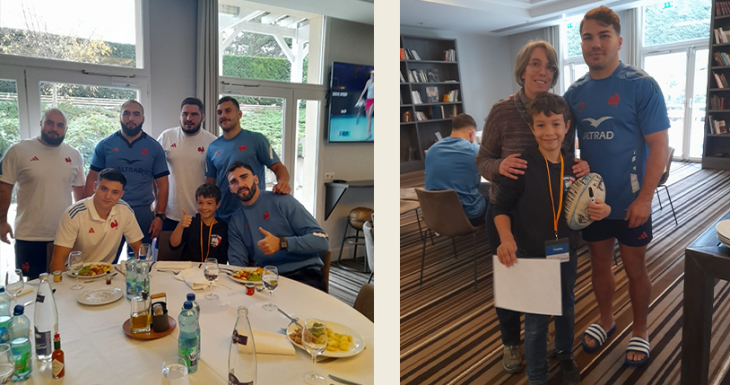 À table, Timothy partage un moment unique avec des figures emblématiques du rugby français, comme Raphaël Ibanez, Thomas Ramos, Louis Bielle-Biarrey et Léo Barré, ses idoles. Entre autographes, photos et discussions passionnées, il pose mille questions sur leurs parcours et leurs inspirations, des souvenirs précieux pour ce petit prince curieux.